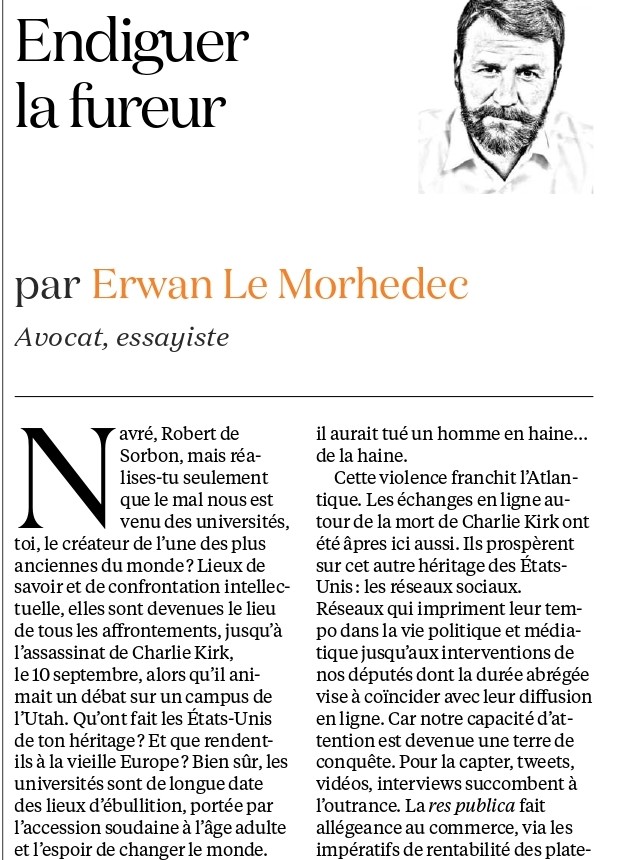 26 septembre 2025 Un commentaire sur Endiguer la fureurNous ne sommes pas immunisés contre la violence que connaissent les Etats-Unis. Et s’il est toujours bon de prôner pondération et courtoisie, comment y convertir quand seuls les outranciers captent l’attention ? L’influence des réseaux n’est qu’un axe de réflexion, mais elle ne doit pas être sous-estimée.